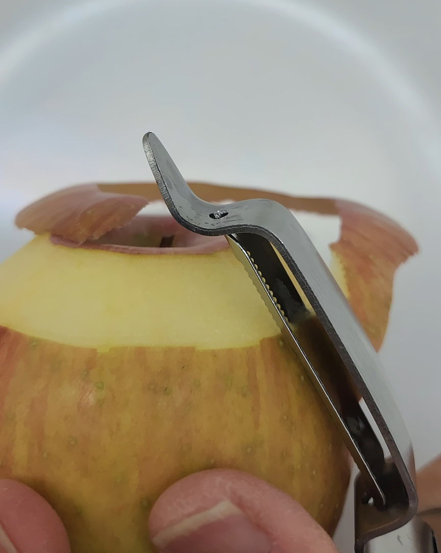 사과같은 과일껍질을 대량으로 깎기에는 일자형 감자칼이 훨씬 작업하기 편리합니다.